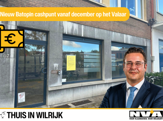 Wilrijk – Districtsburgemeester Kristof Bossuyt kondigt met grote tevredenheid aan dat er vanaf december dit jaar een Batopin cashpunt beschikbaar zal zijn op het Valaar (Pastoor Bauwenslaan 67, 2610 Wilrijk). Deze wijk, met bijna 11.000 inwoners, heeft sinds juni vorig jaar geen mogelijkheid meer om cash geld af te halen. Het gebrek aan toegankelijke geldautomaten is een bekend probleem, en we zijn blij dat er nu een oplossing komt voor de bewoners van het Valaar.